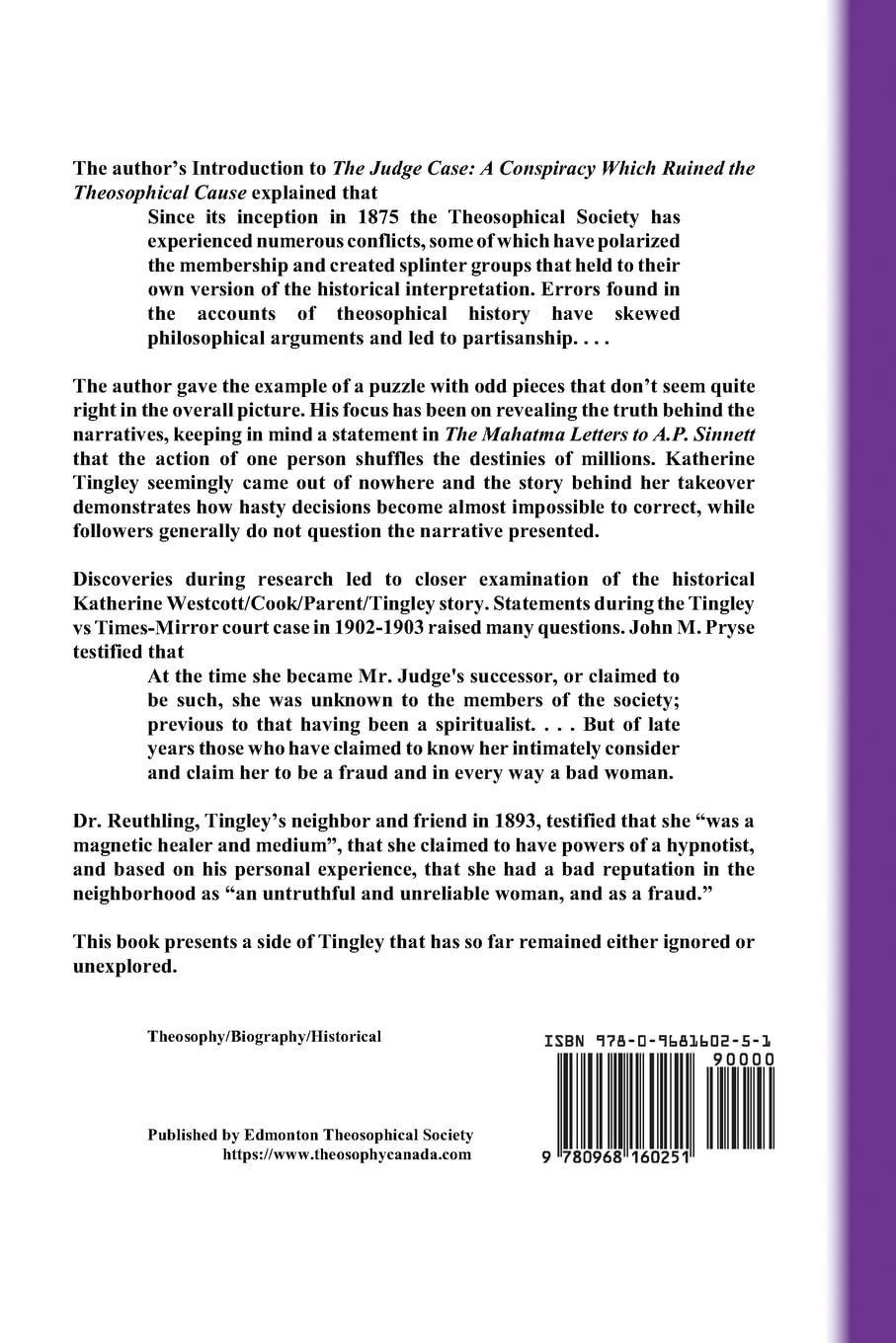 The Judge Case: Recent bequests for the purpose of distributing The Judge Case: A Conspiracy Which Ruined the Theosophical Cause are allowing Edmonton TS to offer the remaining copies of this title as follows. You are encouraged to get in touch with Edmonton TS with contact information for the library or institution you recommend, and a copy of the Judge Case will be sent at no charge.* Please ensure the intended recipient is in fact interested in receiving a copy. Edmonton TS will pay the postage. Individuals may receive a copy for the cost of shipping to your personal address. Publishers and distributors, please contact Edmonton TS at contact@theosophycanada.com. Edmonton TS takes this opportunity to thank each and every individual and organization that purchased copies and supported publishing of The Judge Case. We are pleased to be able to make the offer outlined above, and grateful to the friends of Edmonton TS who have made it possible. To order your own personal copy, send cheque or money order to Edmonton TS, Box 4587, Edmonton, AB, Canada T6E 5G4.