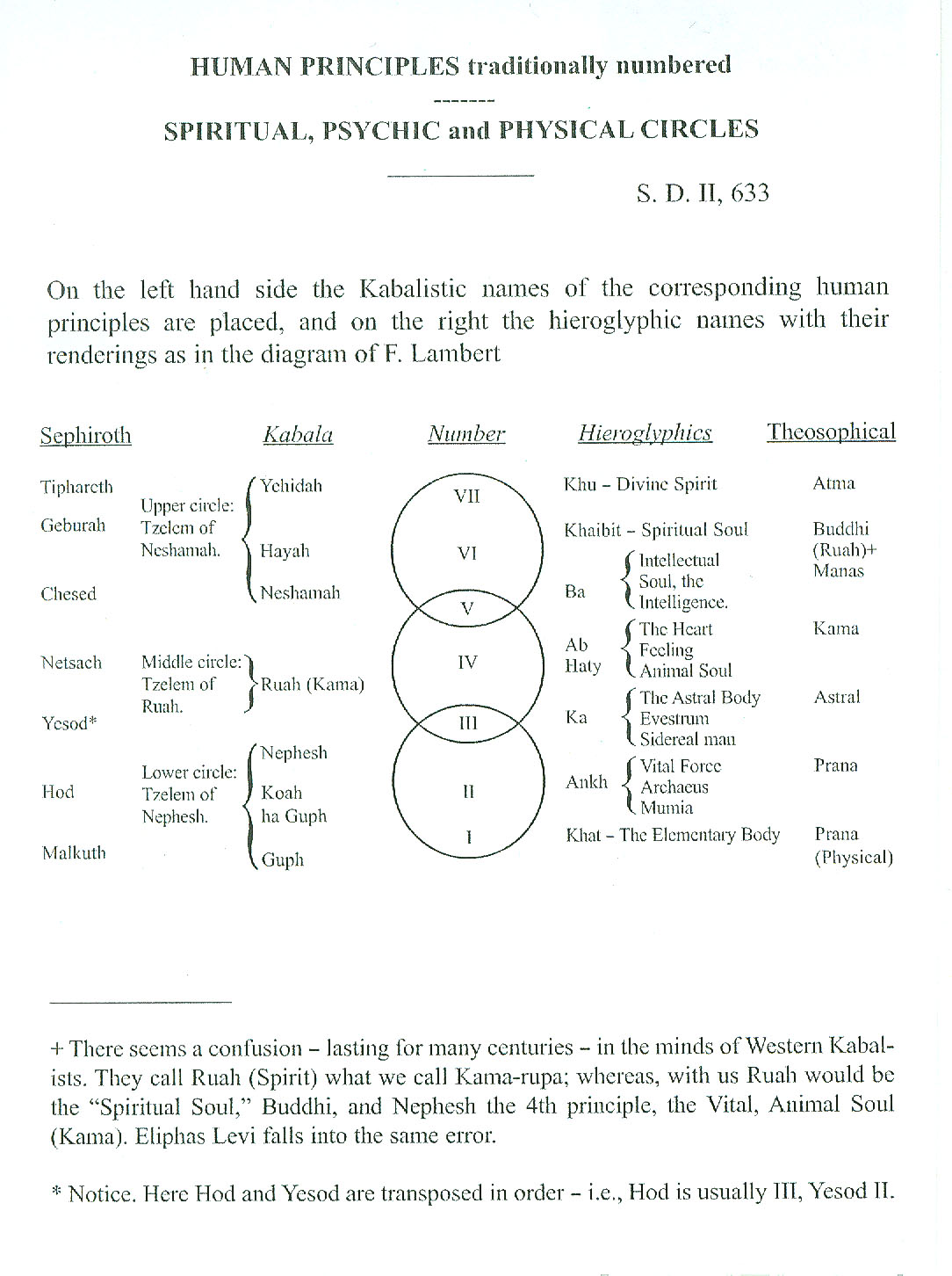 5. “Human Principles traditionally numbered (and) Spiritual, Psychic and Physical Circles” p.125, ibid (adapted from The SD 2:633)