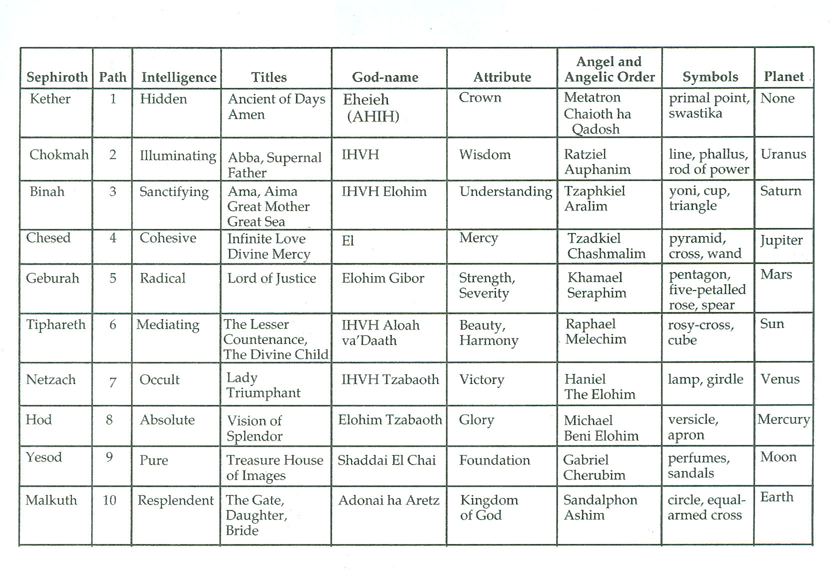 9. Table of Correspondences, p.18 in Archetypes on the Tree of Life by Madonna Compton