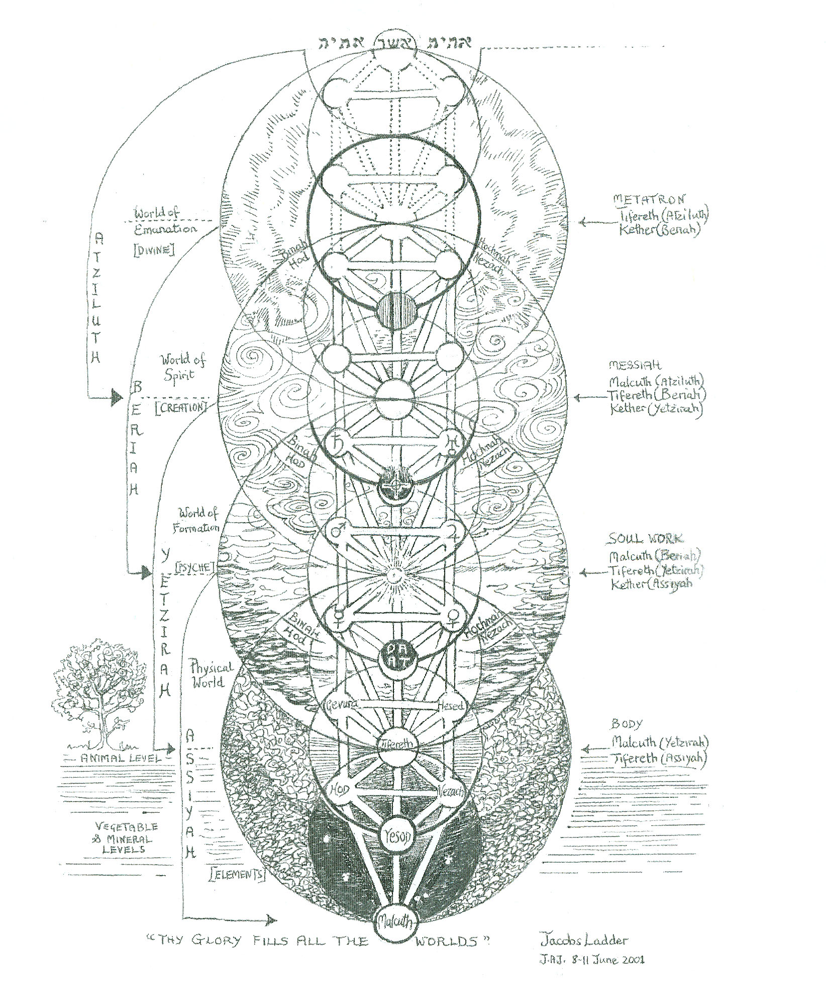 * “The third world is called yetsirah, the world of formation, & is the abode of ten angelic hosts, . . . presided over by . . . Metatron, the Prince of the World, the Angel of Presence.” Nevertheless, the third world acts as prototype to our earth, the lowest of the ‘olamim. “Each of the preceding worlds diminishes in [spiritual] quality . . . [as their respective] formation becomes grosser. (CP, Kabbalah, pp.64-66)